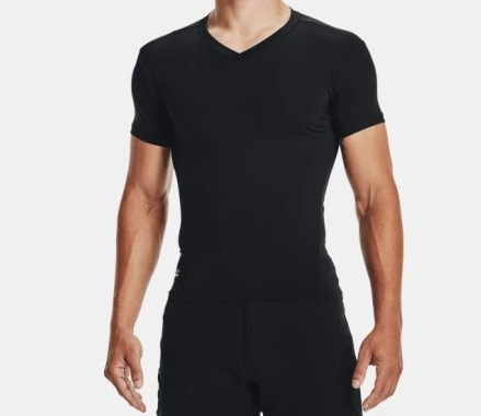 UNDER ARMOUR TACTICAL HEATGEAR COMPRESSION MENS V-NECK SHORT SLEEVE T-SHIRT-Extra Large-Black