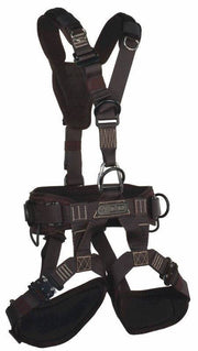 380 Voyager Riggers Harness now comes with same width waist pad as Rope Access Harness. For professional use in stage rigging and construction applications where a lightweight Class III harness with positioning rings and multiple attachment points are desired. 5 inch waist pad provides extreme comfort. Quickly and easily donned and adjusted by use of camlock buckles and New Stab-Lock ANSI Z359.1 certified quick connect leg buckles. New contoured shoulder webbing with removable shoulder pads. Improved wider leg pads for more comfort. Attachment points at waist, hips (positioning), chest (sternum), back (lumbar) and back (dorsal). Weight 5 lb. 9 oz.