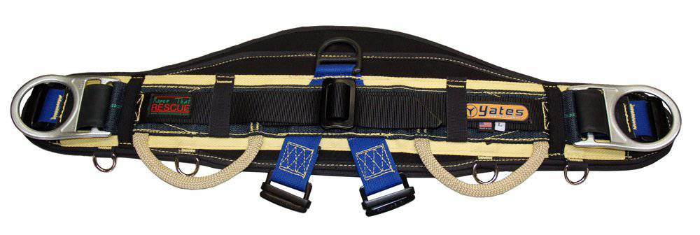 In conjunction with transmission line rope access pioneer, Reed Thorne of Ropes That Rescue and other western utilities like Pacific Gas & Electric, Yates has designed the 390FA harness to meet the needs of the transmission tower worker who is now utilizing rope access techniques. The 390FRA Harness is designed and recommended for helicopter external load short haul work. The 390FRA harness has a more flexable waist pad system than the 390FRC Harnesss. This harness was specifically designed with electric utilities helicopter short haul programs in mind. The 390FRA Rope Access Lineman Harness meets the stringent requirements of ASTM F887-05 Electric Arc-Flash rating for personal climbing equipment. Many new features are seen in the New 390FRA harness. Cobra quick connect buckles on the waist portion of the harness, ANSI carabiner to attach chest to seat. Constructed from webbing which is a blend of Nomex in the exterior for comfort and durability and Kevlar in the interior for strength. Specially designed for the professional transmission tower worker. Wide anatomical waist pad for increased comfort and added back support. Modular work/tool pouch system allows the user to customize each harness to their own arrangement. Easily adjustable for variations in clothing by use of camlock and cobra buckles. Attachment points at waist, hips, chest, back (lumbar) and back (dorsal). New U shaped rear shoulder design distributes load evenly accross the neck of the user. Milled Aluminum COBRA quick now used to connect waist belt to waist pad and to connect leg buckles for easy donning. COBRA buckles are ANSI Z359.1 -2007 certified. Weight 7lb. Petzl S & L Auxillary Caritool Tool Holders and Yates Tool Holsters sold seperatly.